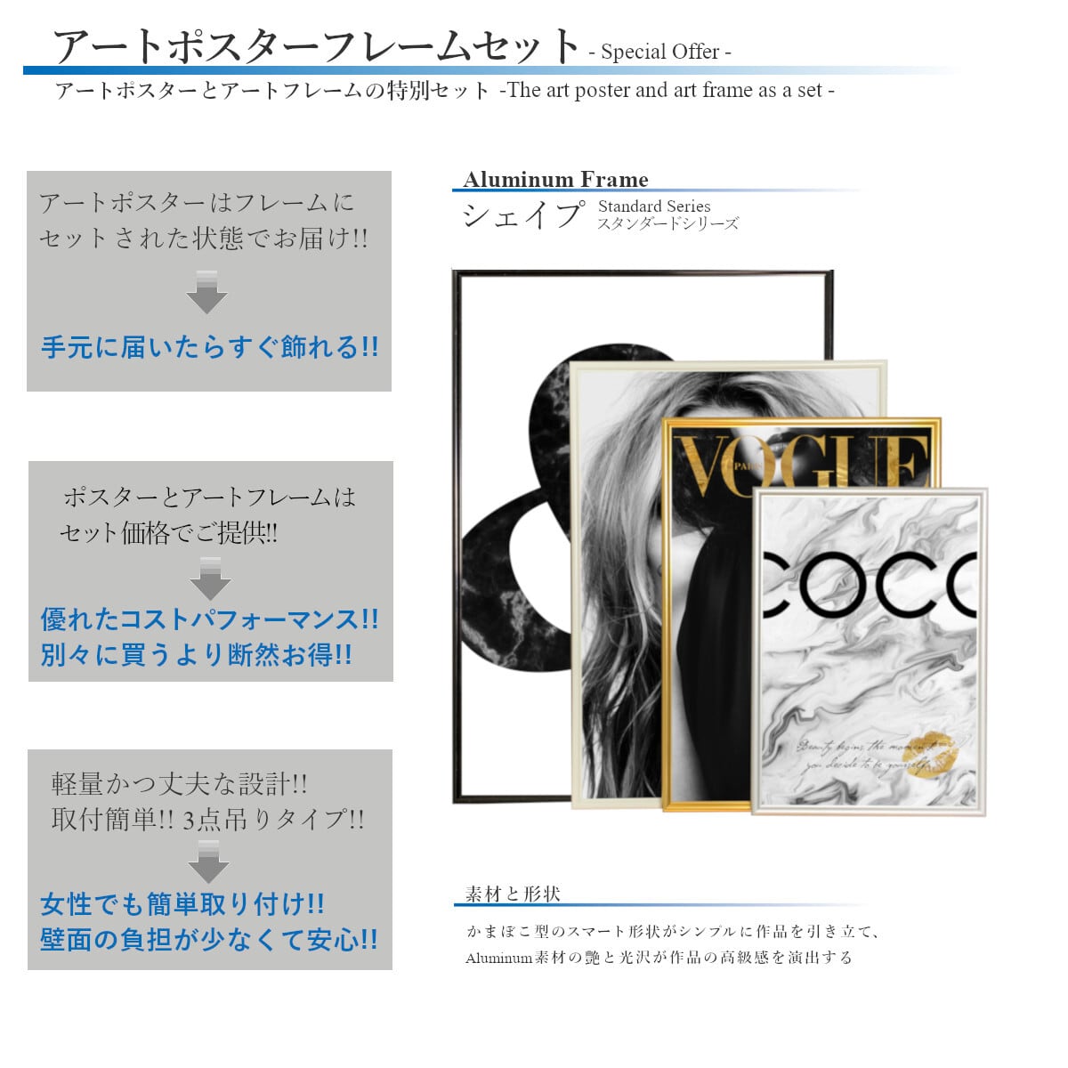 □セット:ポスター単品/フレームセット(ブラック/シルバー/ホワイト)